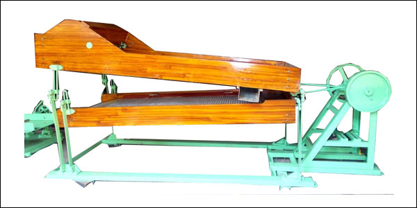 Machine is supported on heavy and strudy MS structure. Double acting forged crank shaft is mounted on heavy MS frame with Plumer block bearing, Pulley & fly wheel, suitable for motor drive. Connecting Rod is fitted with heavy duty Gun metal bush. All wooden frame are made of high quality seasoned wood. Best quality Dimple tray with specific hole size. Provided, facility to change inclination of Deck to control grade percentage up to optimum level.